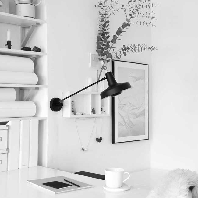 Arigato væglampe kommer i farverne Sort og Hvid.
