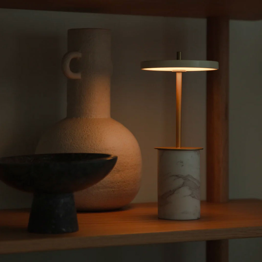 Asteria Move Mini Trådløs Bordlampe - White Marble - H: 25.5 cm - Umage