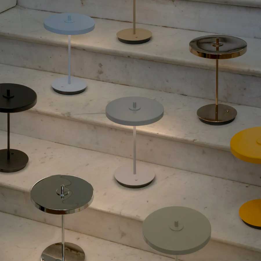 Med Asteria Move lampen er der mulighed for at lysintensivere på tre niveauer ved at justere knappen på lampens base. Batteriets holdbarhed er helt op til 35 timer og den kan nemt oplades ved at placere den oven på en Qi-opladningsenhed eller med det medfølgende USB-kabel.