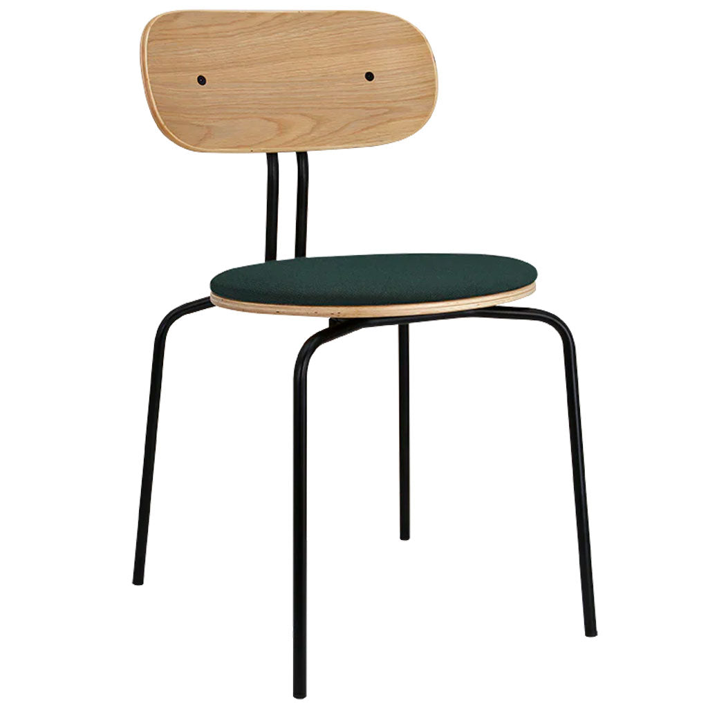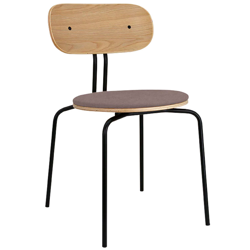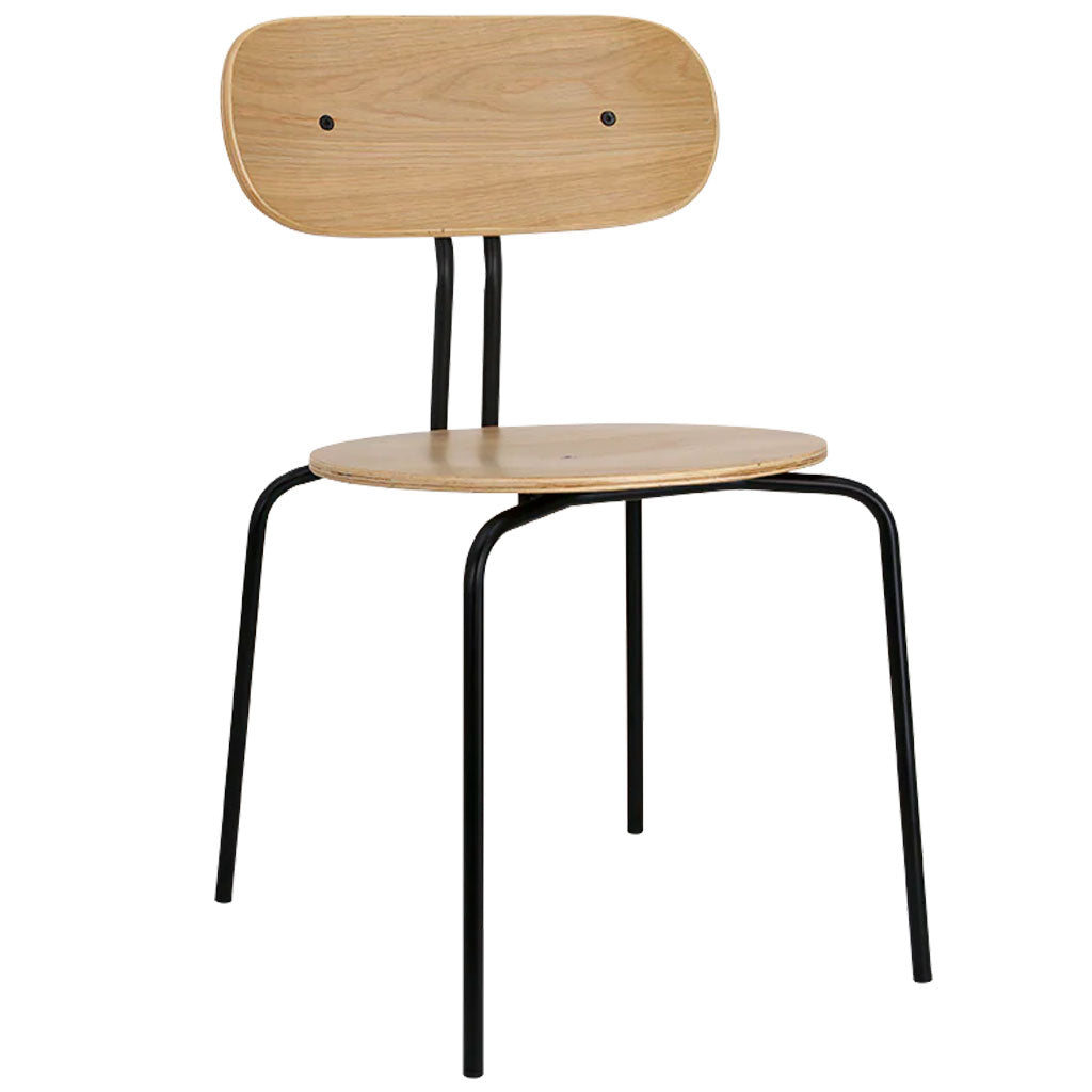 Curious er en stabelbar stol med et let, minimalistisk og elegant udtryk. Curious er fremstillet af egetræsfiner med ben i sort.