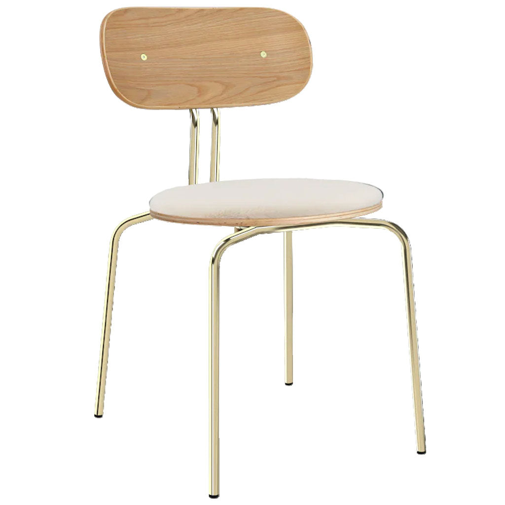 Curious er en stabelbar stol med et let, minimalistisk og elegant udtryk. Curious er fremstillet af egetræsfiner med ben i messing.