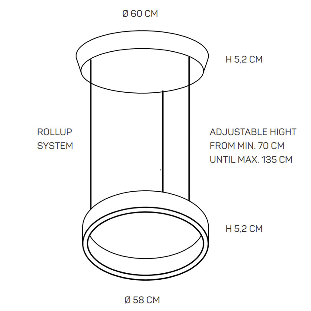 Pendlen er udstyret med en praktisk roll-up system, der gør det muligt at justere højden fra 70 cm til 135 cm, hvilket giver fleksibilitet og gør den ideel til både lave og høje lofter. Lampen udsender både opadrettet og nedadrettet lys med en samlet effekt på 36W (18W op og 18W ned), og den varme lysfarve på 2700 Kelvin skaber en behagelig og indbydende stemning.