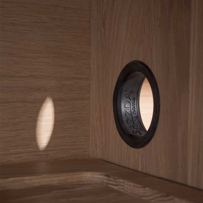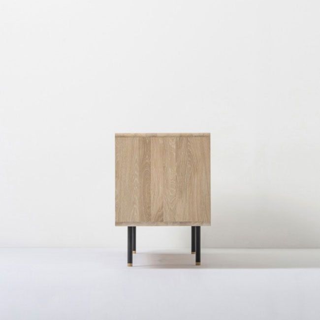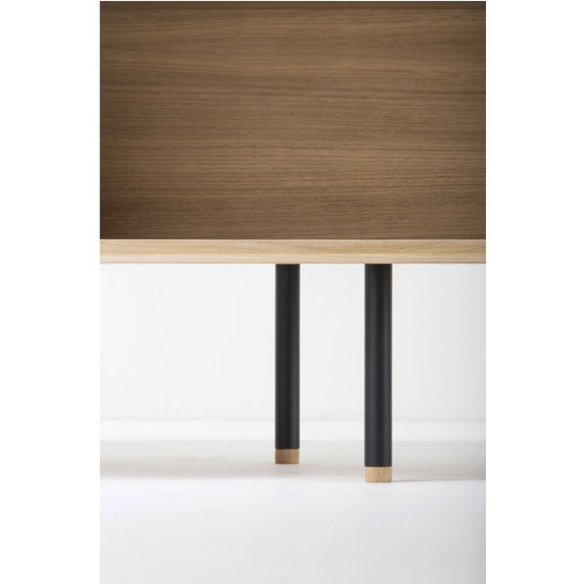 Gazzda Fina skænk er fremstillet i eg med skuffer i linoleum.