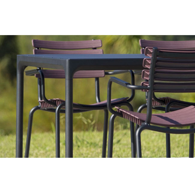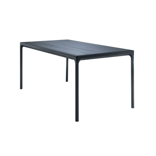 FOUR havebordet har en bordplade og ben i pulverlakeret sort aluminium.