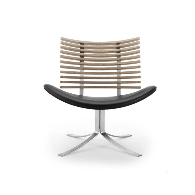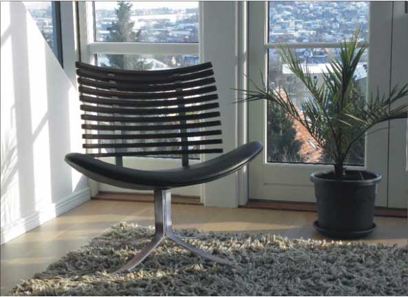 Gepard lænestolen fra Naver Collection fås i eg, ask, sort- eller hvidbejdset ask og valnød. Sædet er polstret med læder.