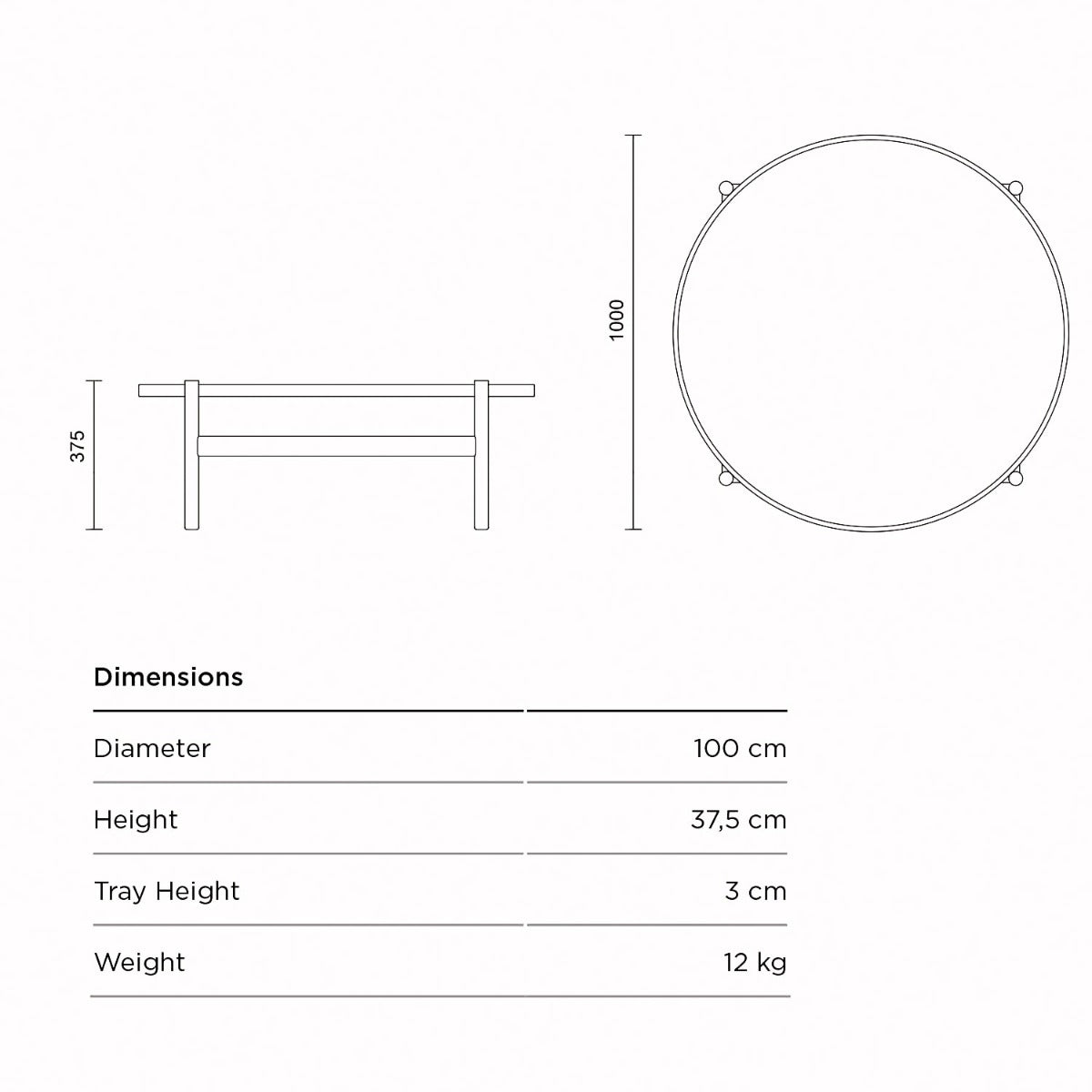 Mål: Ø100 x H37,5 cm. Bakke højde: 3 cm.