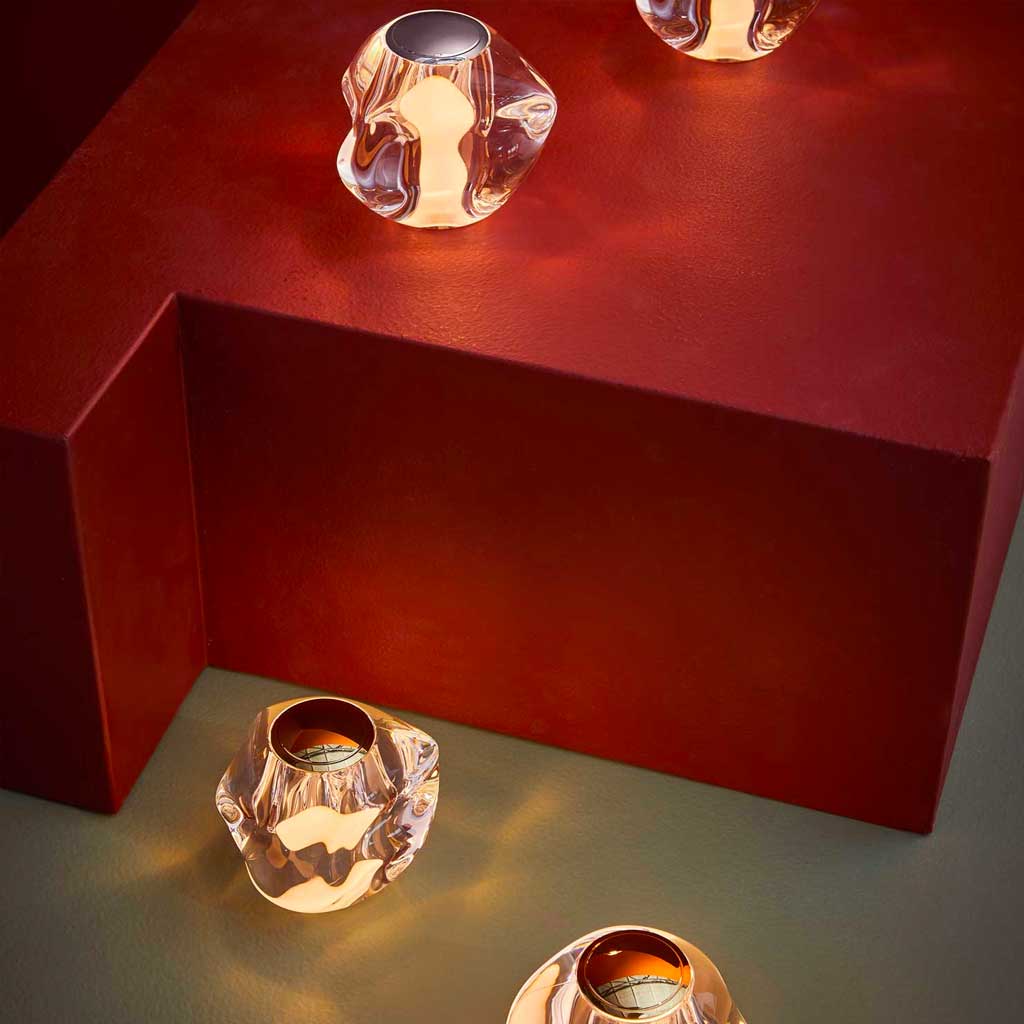 Denne model er med en kromfinish på pladen, og den fås med en guldfinish på toppen, så du kan vælge den, der passer bedst til din personlige stil og indretning. Med en effektiv LED-lys på 2 watt og en varm farvetemperatur på 2700 Kelvin skaber ICE BALL en behagelig atmosfære i rummet. Lampen har også en praktisk knapafbryder i bunden og et genopladeligt Li-ion batteri indeni, hvilket giver fleksibilitet til at bruge den, hvor end du ønsker, uden at være begrænset af ledninger.