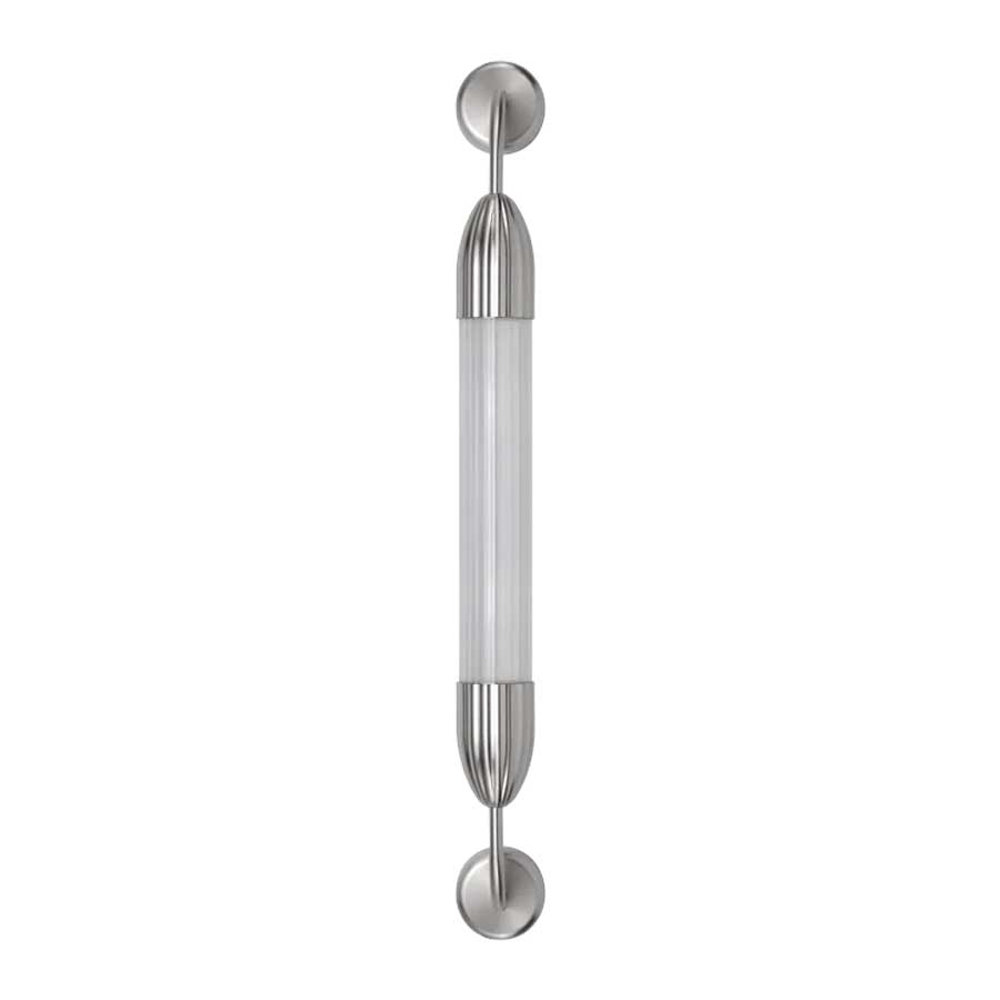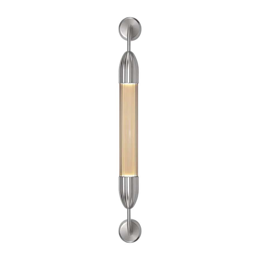 Lemon Squeeze væglampen single vækker nostalgisk charme med sin kombination af riflede glas og skulpturelle metaldetaljer, der forener moderne æstetik med elegante referencer til fortiden. Den strukturerede glasoverflade fanger lyset smukt, mens den indbyggede diffuser sikrer en blid og jævn belysning, der skaber en rolig og harmonisk atmosfære.