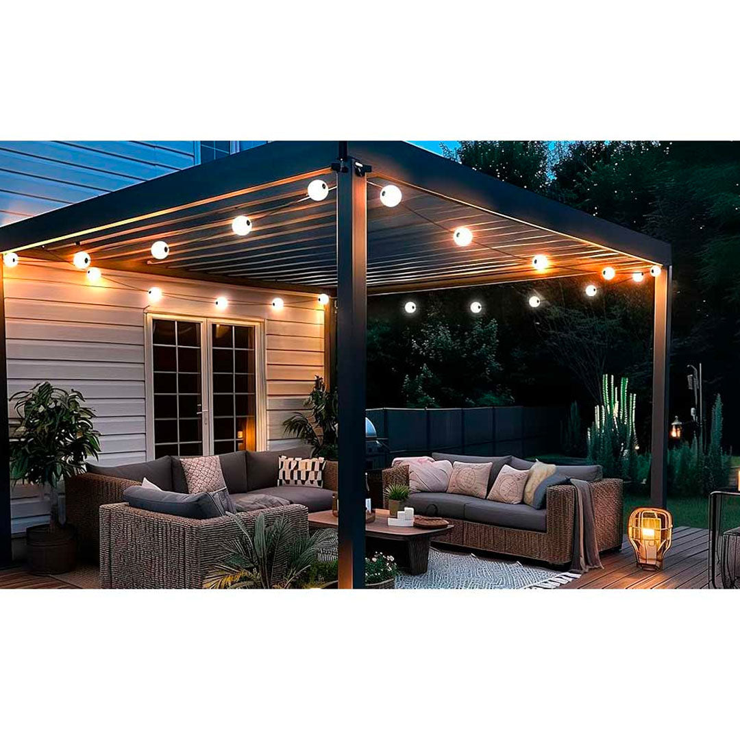 IP67-klassificeringen gør MISS Garland 12 særligt velegnet til udendørs brug, da den er modstandsdygtig over for både regn og støv. Den fleksible montering giver mange muligheder for kreativ opsætning – hæng den langs et rækværk, rundt om en pergola eller lad den svæve frit i rummet. En ideel løsning til både private og professionelle miljøer, hvor stemningsfuld belysning er i fokus.