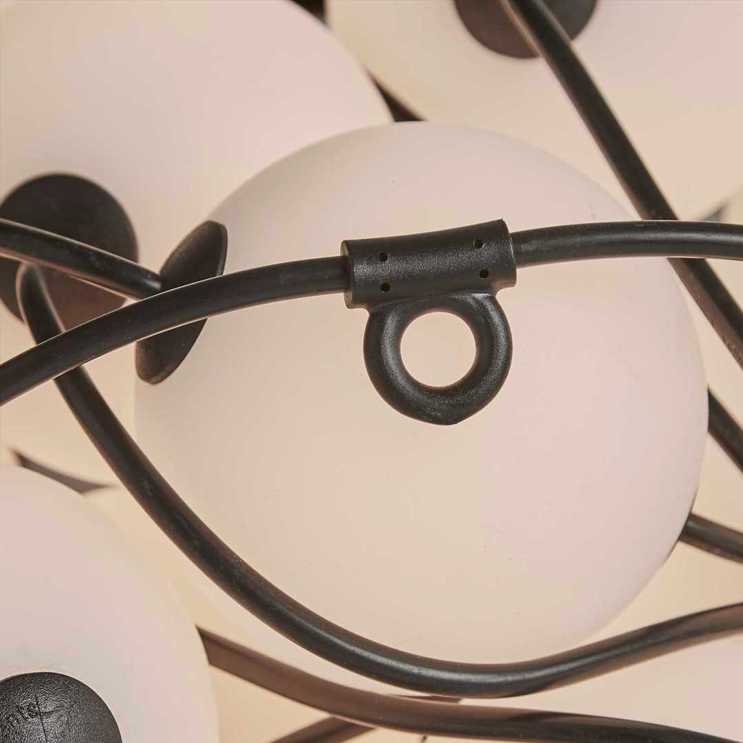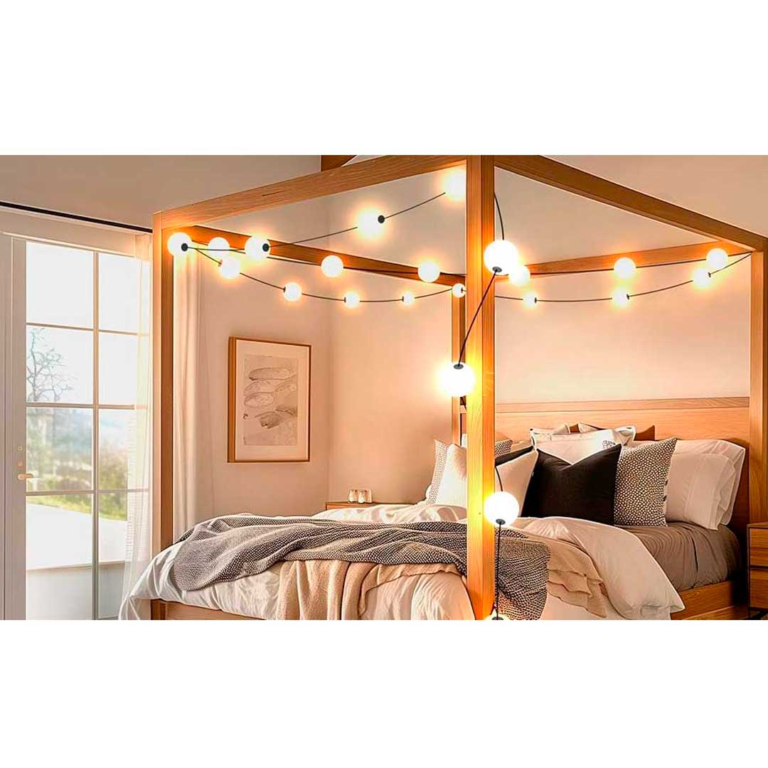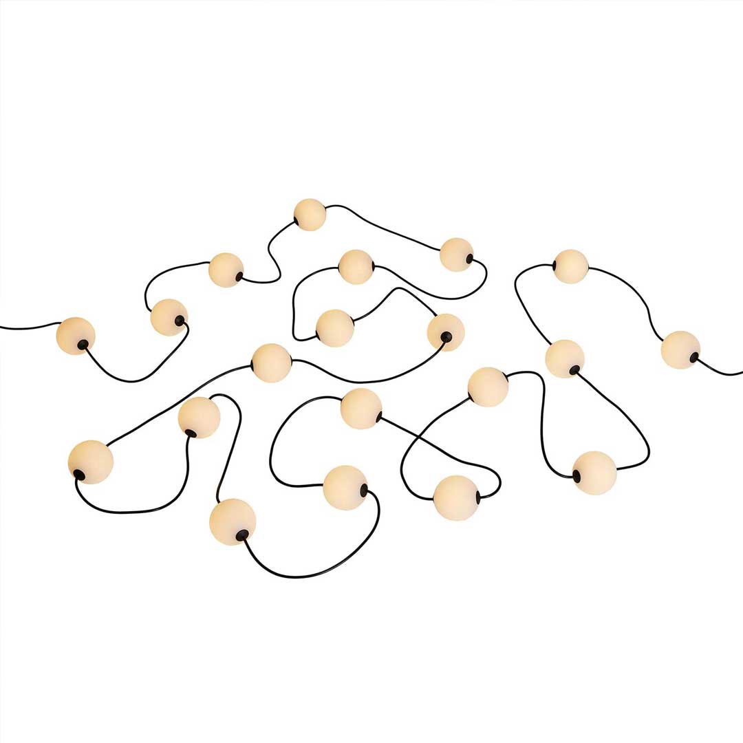 MISS Garland 20 er en dekorativ lyskæde med 20 runde lamper (Ø10 cm) og en imponerende længde på 1434 cm, der skaber en smuk og stemningsfuld belysning. Med sin IP67-klassificering er lyskæden ideel til både indendørs og udendørs brug – og kan endda placeres direkte i vand, hvilket gør den perfekt til pools, søer eller havemiljøer. De indbyggede LED-lyskilder udsender et varmt 2500K lys med en samlet lysstyrke på 20 x 80 lm, hvilket giver et blødt og indbydende skær.