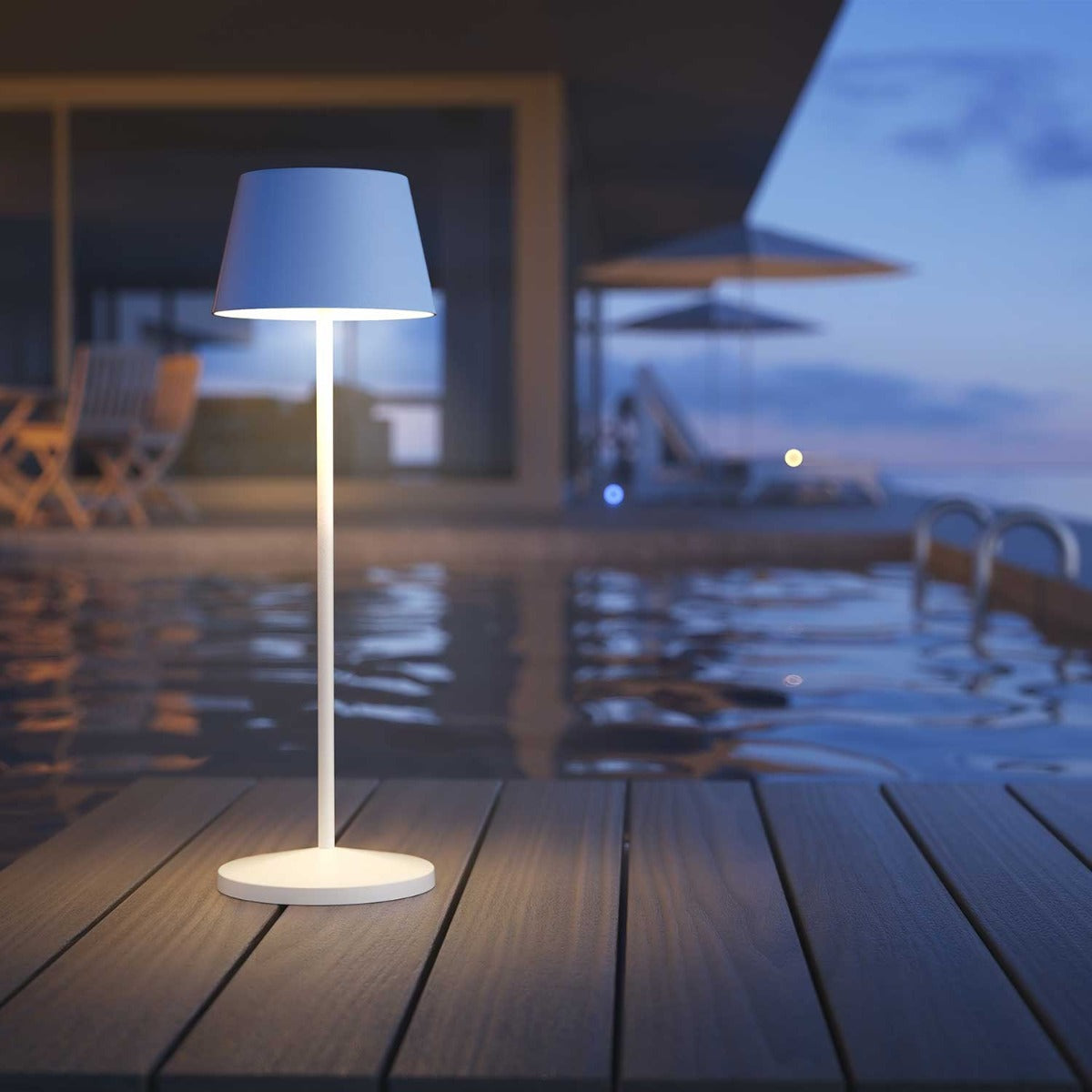 Modi batteribordlampen fra Loom Design har et elegant design med sin klassiske skærm, der sender lyset direkte nedadrettet. På skærmen sidder en berøringsdæmper, der let justerer lyset. Batteriet i bordlampen er let at oplade med den medfølgende opladningsbase med USB kabel, og den kan lyse i mere end 9 timer, inden den skal oplades.