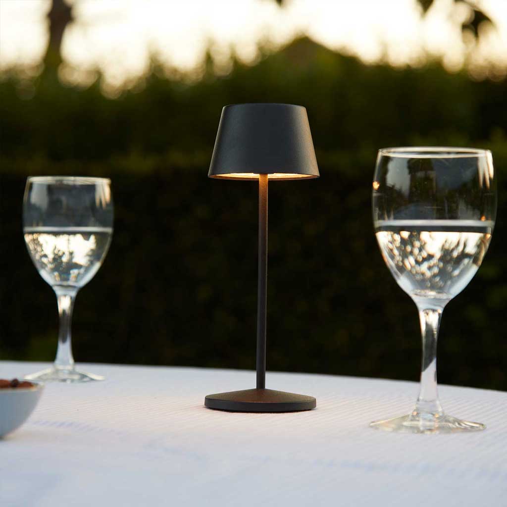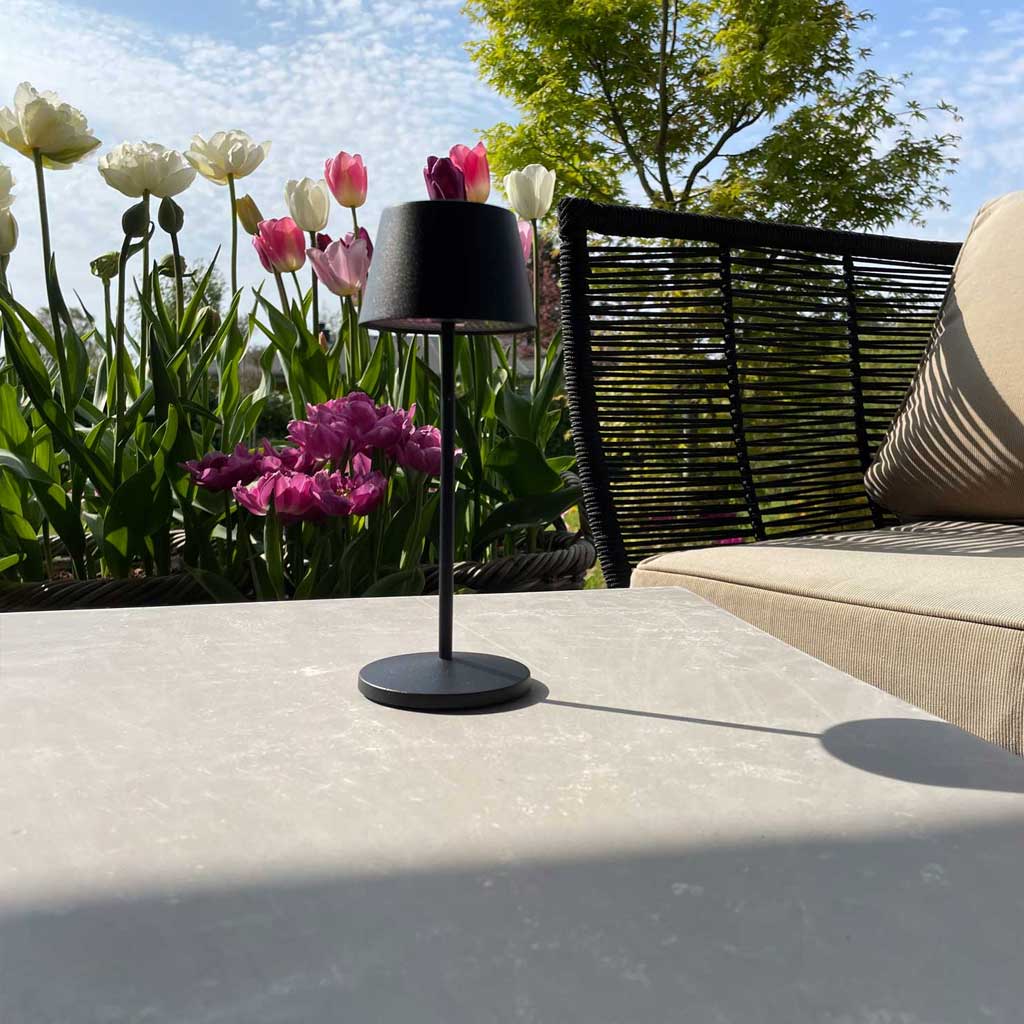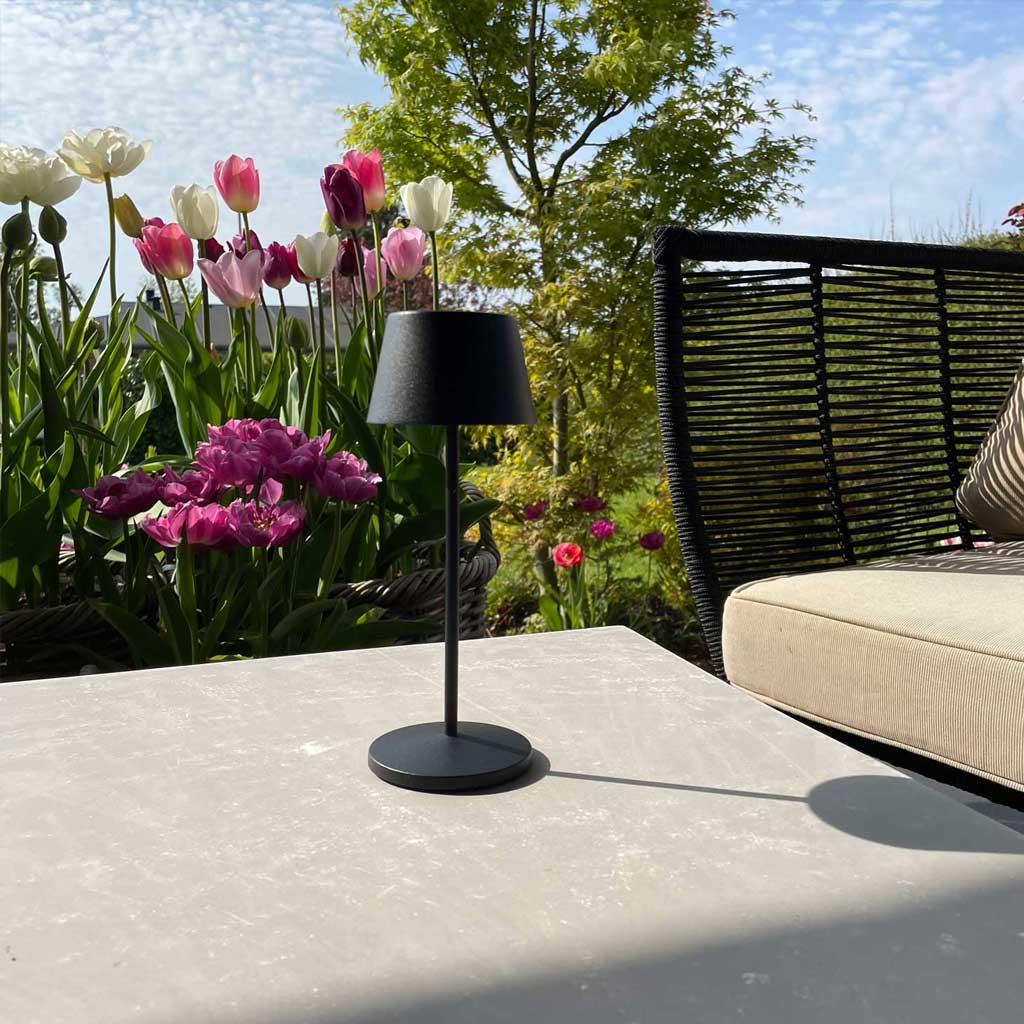 Modi Micro Sort er en lille, batteridrevet bordlampe i aluminium med klassisk lampeskærm og et elegant og tidløst design – perfekt til mange rum og indretninger. Modi Micro har desuden IP65-tætningsgrad, hvilket gør den egnet til brug udenfor.