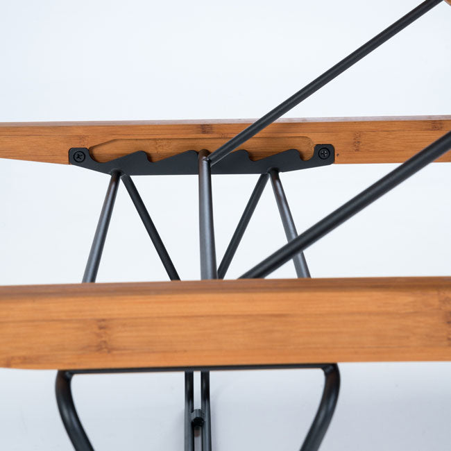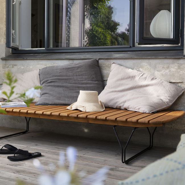 Overfladen og de bløde afrundede bambuslameller kombineret med metalkonstruktionen fører tankerne mod en mole og den afslappede atmosfære ved havet.