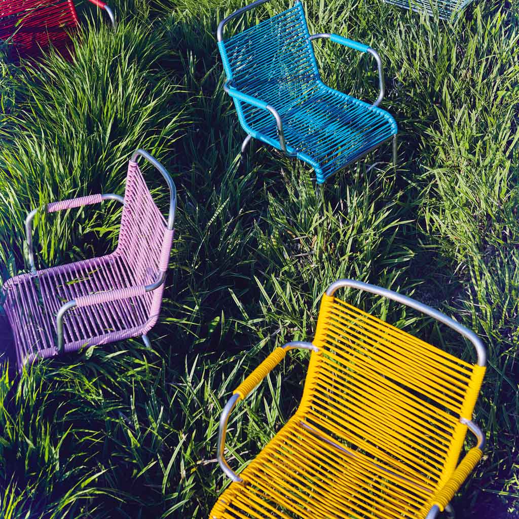 Fiam Mya er en elegant havestol med et harmonisk design – praktisk, stabelbar og let at håndtere. Designet af Ennio Favagrossa har Mya en let aluminiumsramme, mens sædet og armlænene er håndflettet med PVC-snore, også kendt som "spaghetti".
