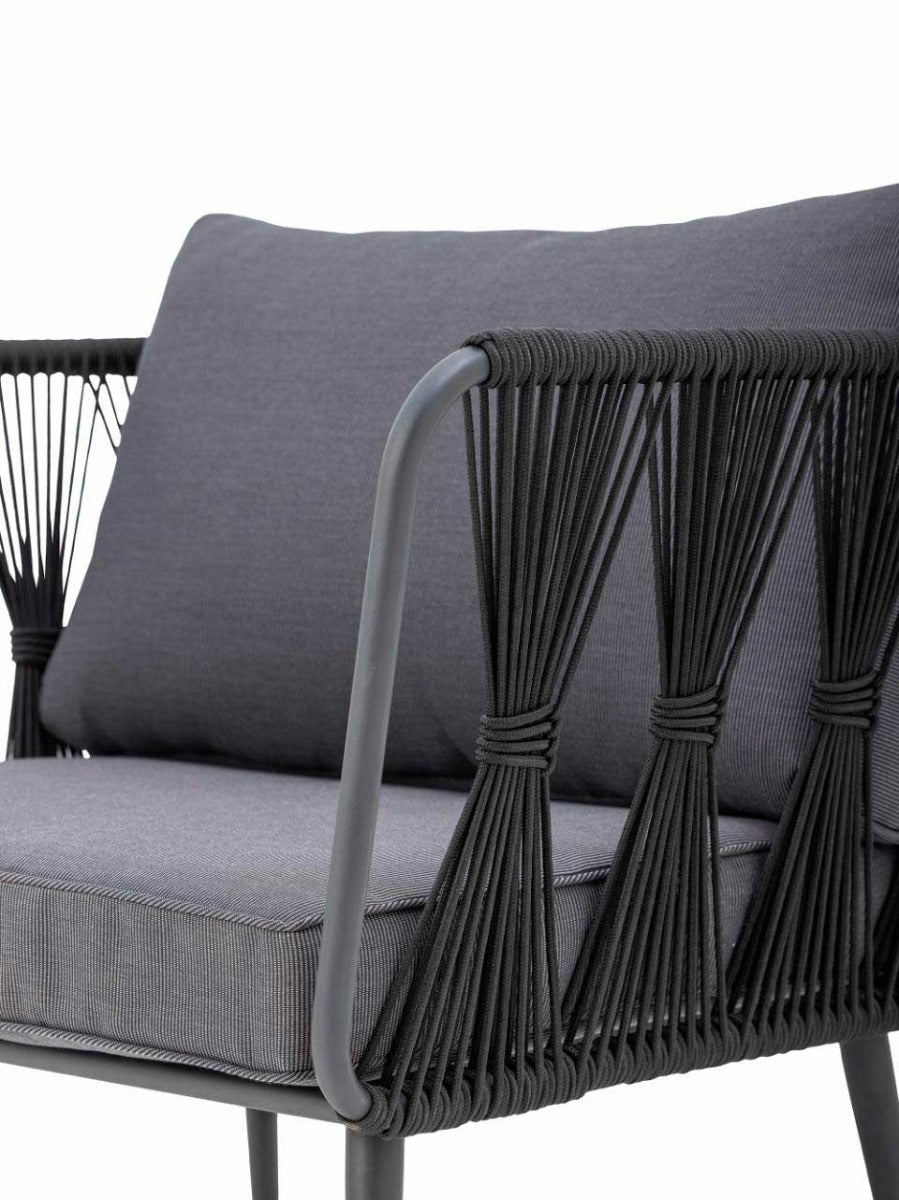 Pavone Loungestolen fra Bloomingville er designet med et let nordisk look og smukke detaljer. Den er lavet af pulverlakeret sort metal med lysebrunt polyesterreb håndvævet på stellet. De matchende beigebrune pudebetræk er lavet af polyester og kan vaskes ved 30 grader. Havestolen er velegnet til alle udendørsarealer, men ved at beskytte sofaen mod direkte sollys forlænges stoffets farve og sofaens holdbarhed. Nyd en smuk udendørs loungestol med høj komfort.