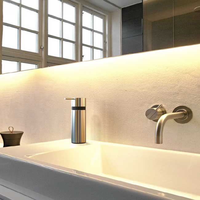Sæbedispenseren fra Frost er fremstillet af rustfrit stål og er enestående i sin enkelhed og elegance.