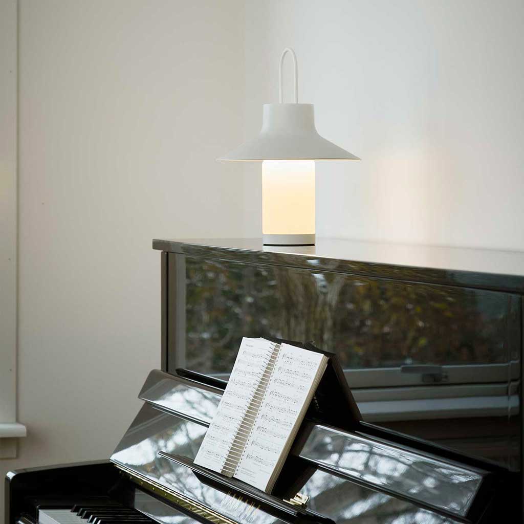 Batterilampen tændes og slukkes med en smart touch-knap, har integreret dæmper med flere lysniveauer samt hukommelse, der kan gemme den valgte lysstyrke og farvetemperatur. Det gør det nemt at justere og gemme den ønskede lyssammensætning – og tilpasse den til rum og stemning.