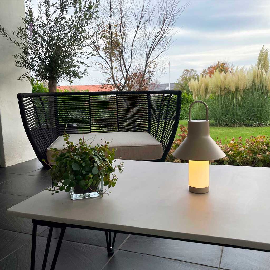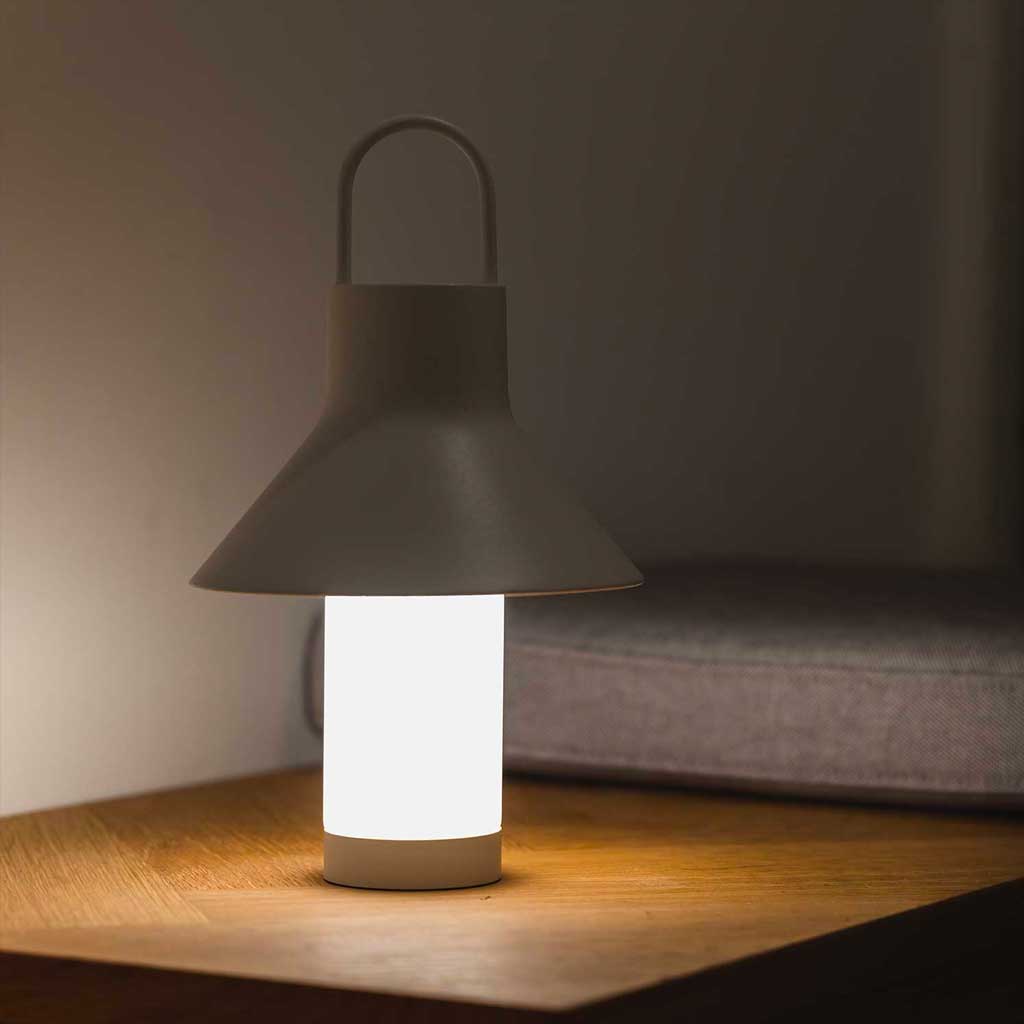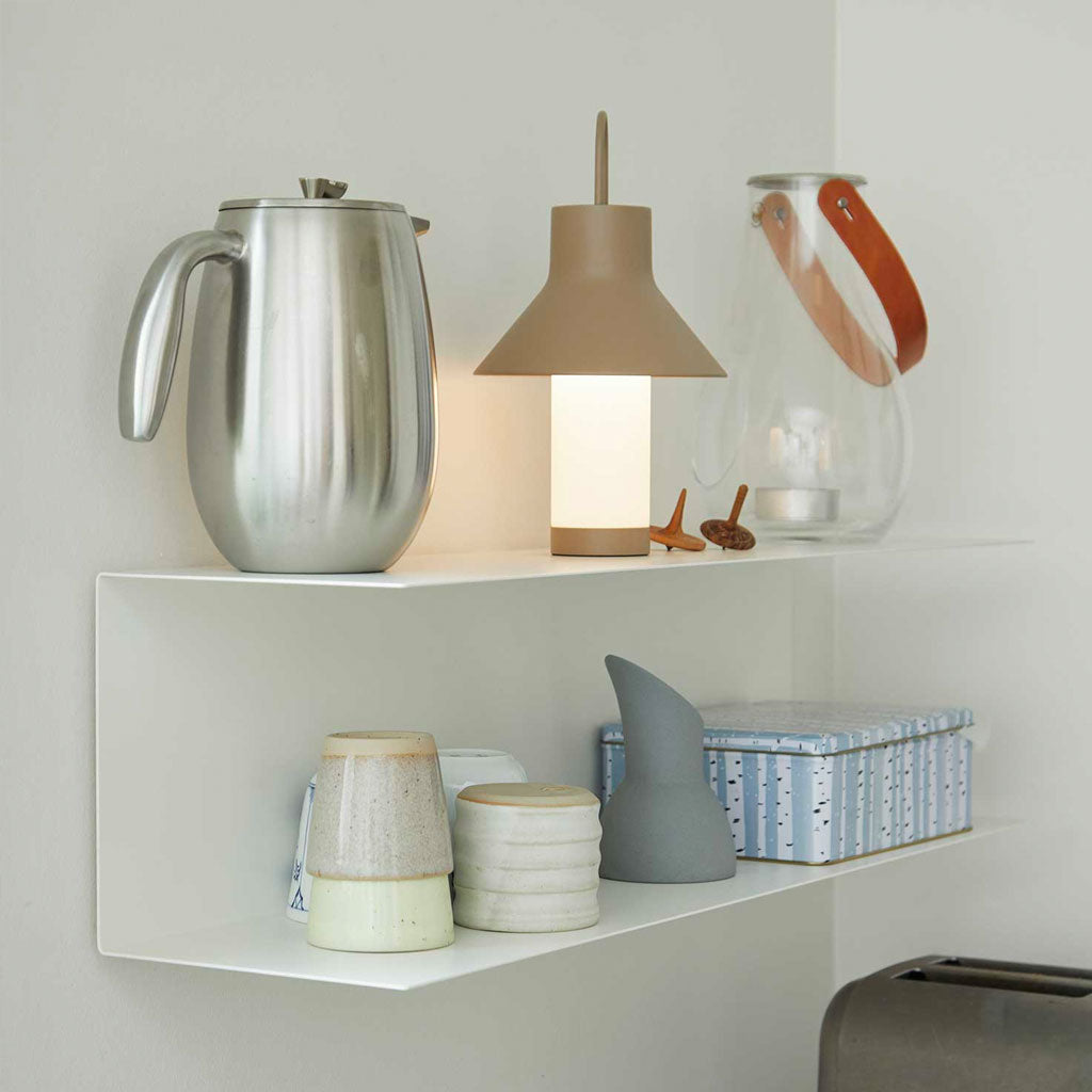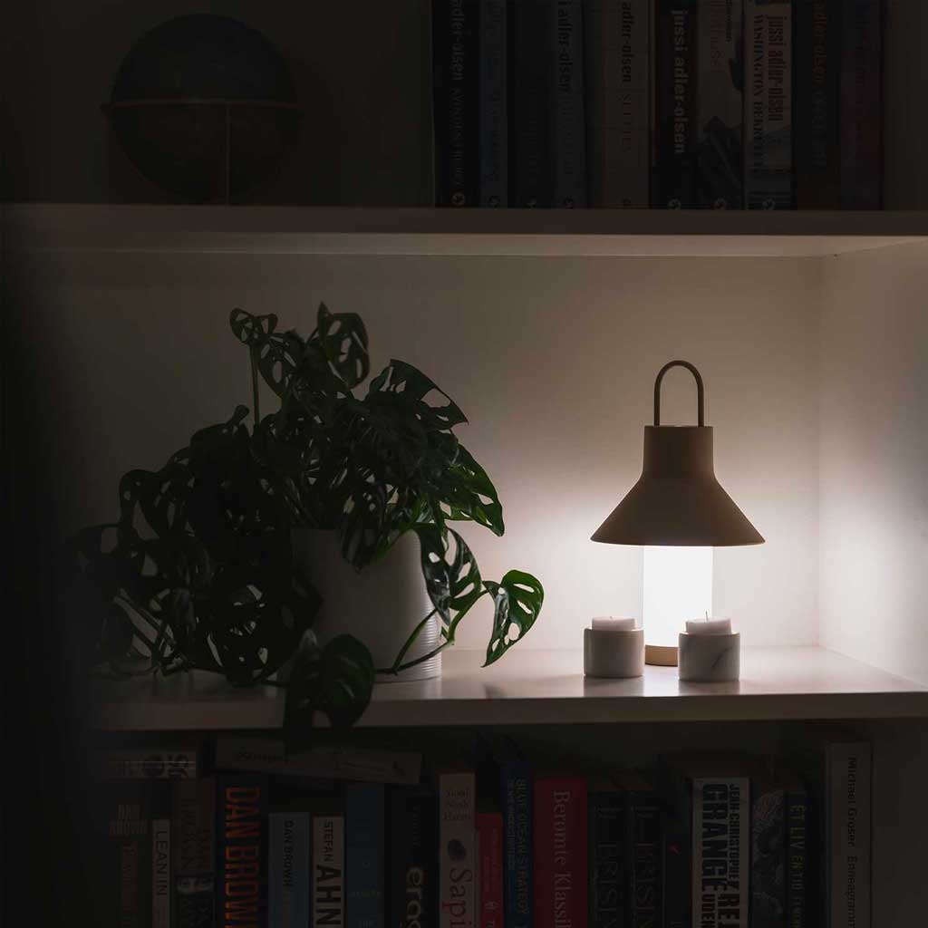 Batteri-bordlampen Shadow er en lampe, der har alt, hvad en moderne lampe skal have – et elegant design, smart funktionalitet og effektiv belysning. Denne udgave af Shadow er gråbeige, hvilket giver karakter og kant, men alligevel på afdæmpet og stilren manér.