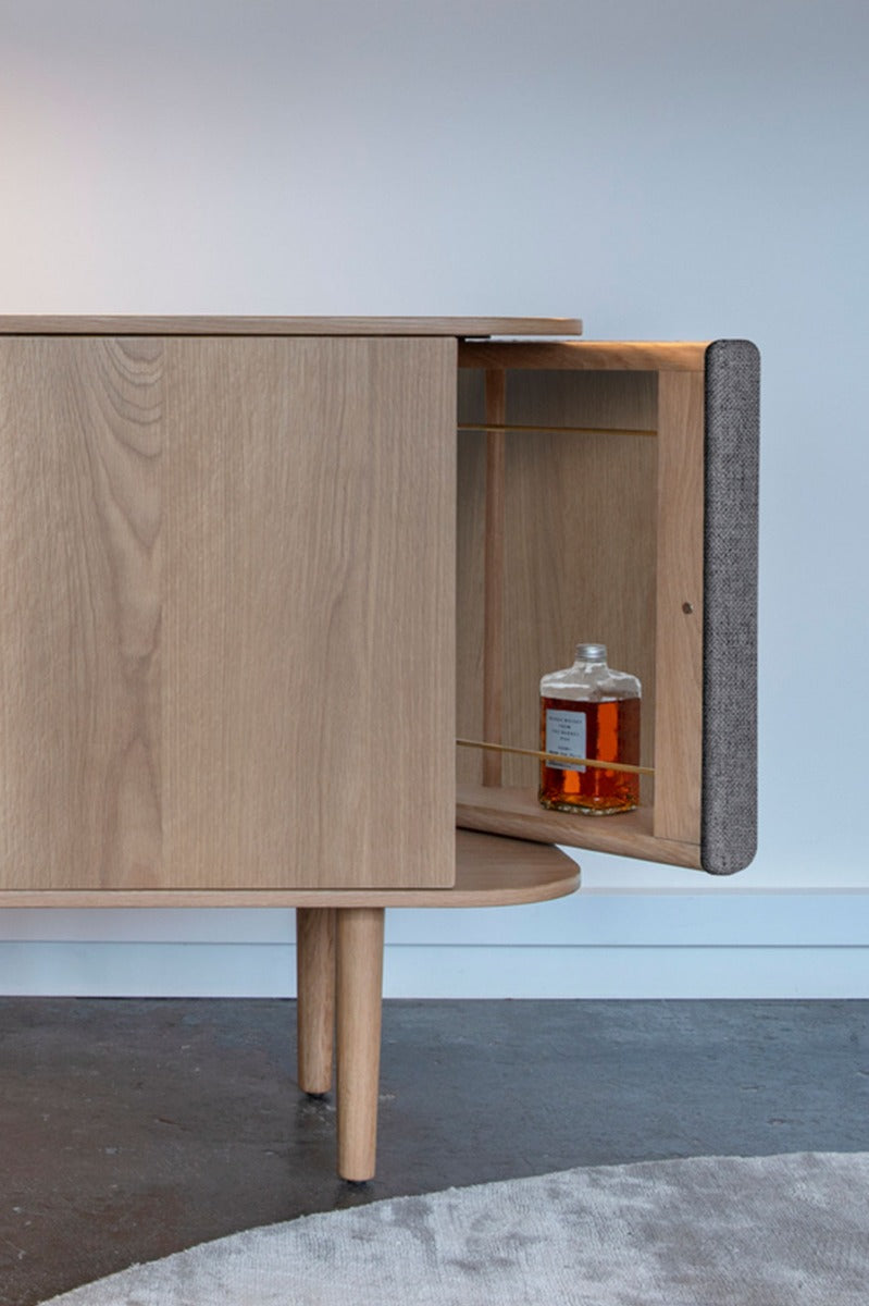 Treasures er et skab, der kan tilpasses efter dine behov. Skabet er lavet af fineret egetræ, og skabets sider har en justerbar beklædning, der giver Treasures et blødt taktilt touch.