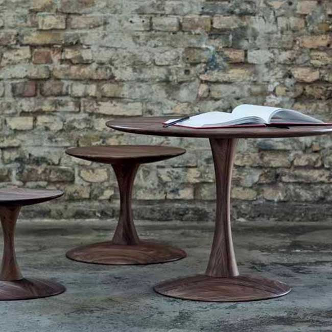 Trisse blev designet af Nanna Ditzel i 1962, og er blevet en af de helt store møbelklassikere. Den lille skammel blev oprindeligt designet som børnemøbel, men er også lavet som her som cafe bord.