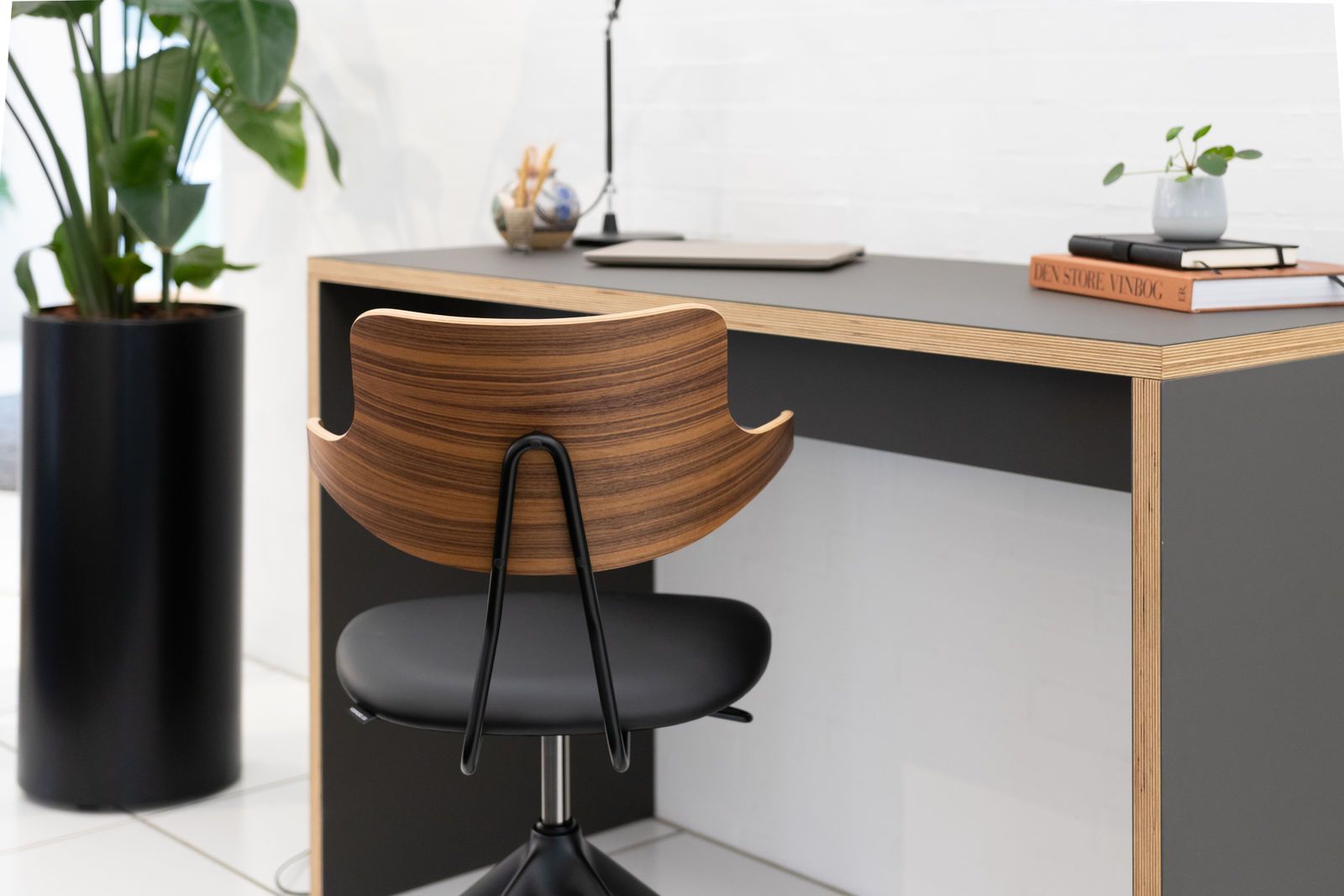VL119 er en fleksibel stol med rødder i klassikeren VL118. Stolen har en kombineret ryg- og armstøtte i et formfuldendt ryglæn. Stolen er elegant udført i et flot samspil mellem FSC-certificeret træ og stålstel med hjul. Polstringen er håndsyet i læder – og alt er monteret i hånden på Vermunds faciliteter i Aalborg.
