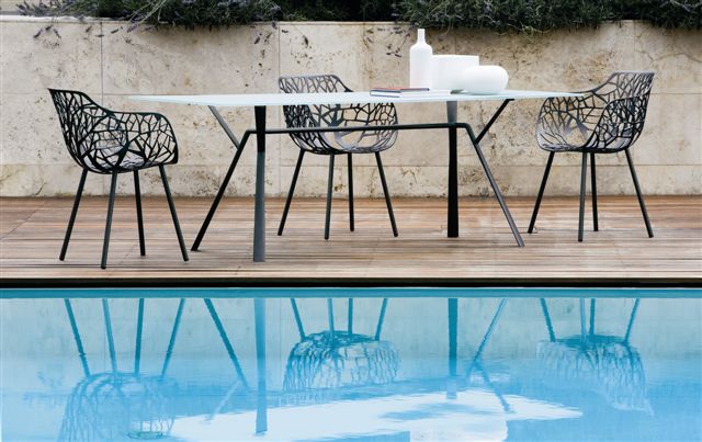 Forest er fremstillet i trykstøbt aluminium og den stabile konstruktion og holdbarhed har gjort Forest til et stort hit i det skandinaviske klima, stolen kan således holde til stå udenfor