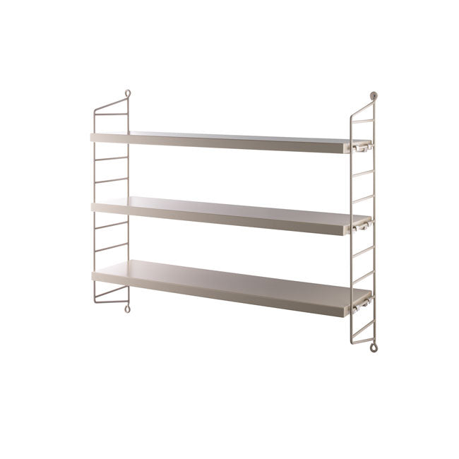 String Pocket består af 3 hylder og 2 sider. String Pocket er let at montere og hylderne flyttes let op eller ned.